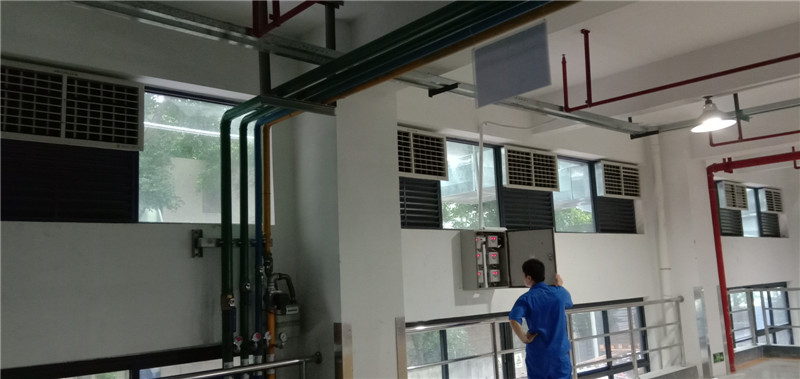 室外新風在通過空調機的“多層波紋纖維疊合物”濕簾時,由于一定比例的水蒸汽混入空氣,因此送入房間的新風將增加房間內空氣的濕度。由于科瑞萊節能環保空調機適用場所為開敞式或半開敞式,室外新風經空調機降溫、加濕后源源不斷地進入房間,房間內的污濁空氣則被排出室外,從而保證了室內空氣的清凉、新鮮,達到了凈化室內空氣的目的。
