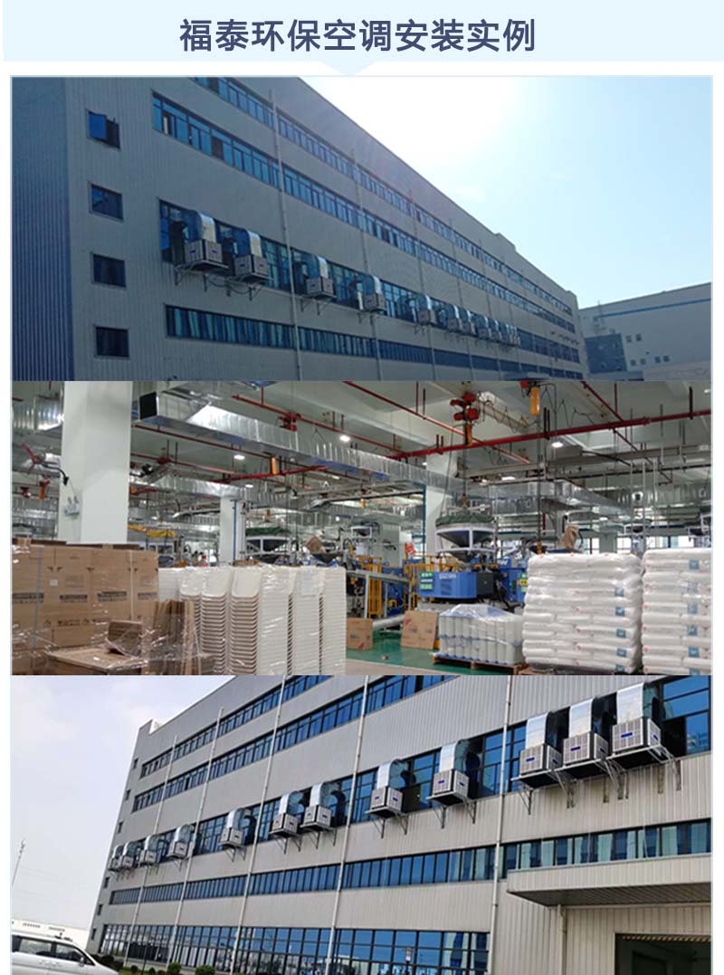 廠房外墻上安裝環保空調,它是通過風機往廠房內送風,室外的新鮮空氣流經浸水的濕簾后空氣與水份充分接觸同時吸收空氣重點中的顯熱,從而達到降溫、換氣、除塵、增加車間內空氣含氧量的目的,這個方案特別適用于高溫及人群密集場所