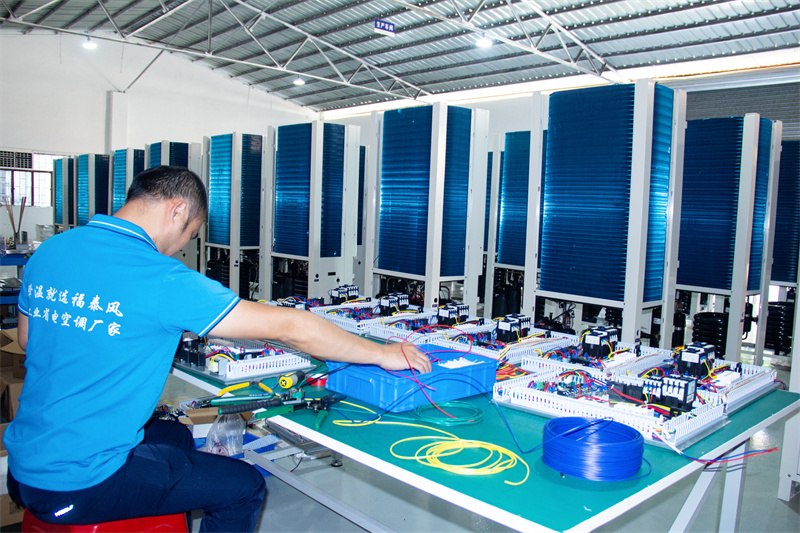 工業節能空調通過水冷、風冷、蒸發冷、壓縮機相結合的工作方式來實現高效制冷和制熱。其工作過程中,首先通過濕簾蒸發式冷凝技術給循環水降溫,然后經過一系列的熱交換過程,最終將低溫低壓的液態冷媒流入蒸發器,與室內熱空氣進行充足交換后吹出低溫風,達到降溫的效果。這一過程中,工業節能空調能夠高效地進行溫度控制,并將能效比發揮到最大,從而降低能耗。