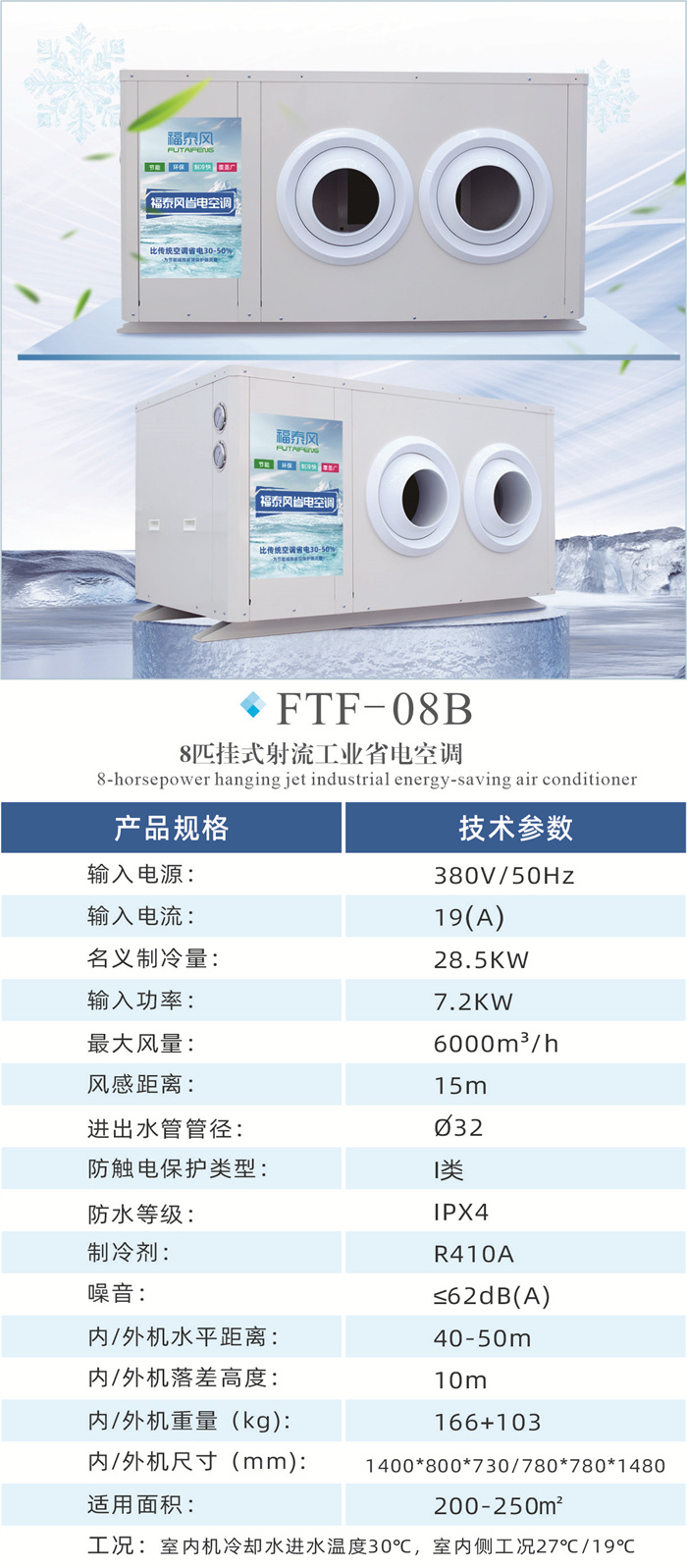 省電同時覆蓋面積比傳統空調面積大3倍,安裝便捷,維護便捷。受到工業商業場所降溫的青睞!